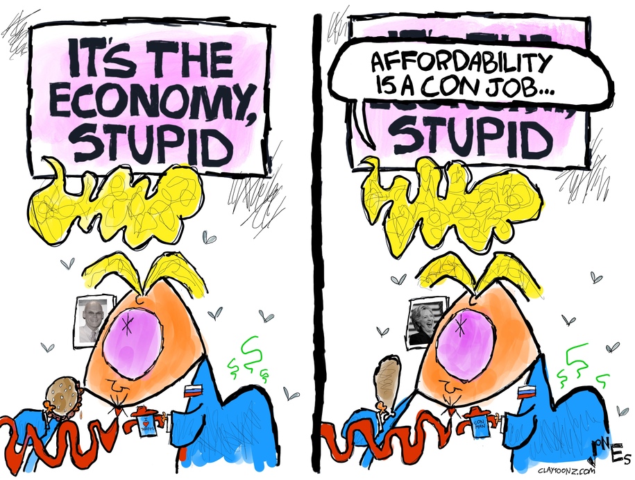 In the cartoon, Jones depicts Trump in a manner that underscores his tendency to dismiss Democratic perspectives on economic matters. The portrayal suggests that Trump’s claims about affordability are a fabricated narrative designed to mislead voters. This representation aligns with ongoing debates in the political landscape, where economic issues have become central to campaign strategies.