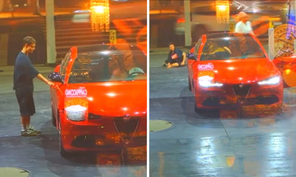 UPDATE: A shocking incident unfolded at a gas station in West Hollywood, California, when a stranger jumped into a couple’s Alfa Romeo while they were filling...
